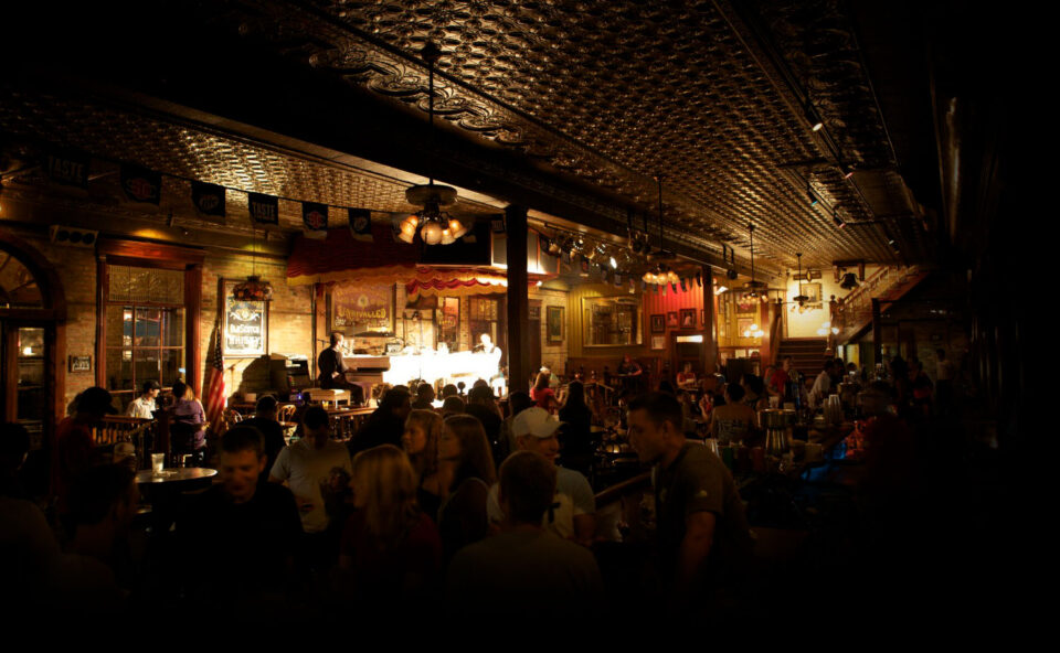 The main door into Rosie’s came from a mansion in Mobile and the other doorway from a townhouse in England. The original room in 1967 was much rougher, with concrete floors and little fine detail. After achieving notable success, Bob Snow, as a labor of love, remodeled Rosie’s with its grand woodwork, pressed tin ceiling and other lavish details you see now.
